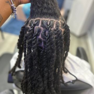 Each loc is carefully rolled to reinforce its shape, smooth frizz, and promote neat, uniform growth from root to tip. Includes a gentle cleanse or scalp prep (if needed), palm-roll retwist, and light finishing for a polished look. Ideal for clients who prefer a classic, natural maintenance method without interlocking.
