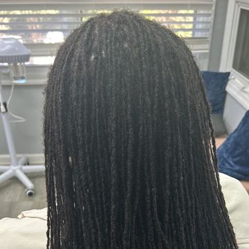 Small micro locs are ultra-fine, lightweight locs created with precise parting and detailed installation for a full, refined appearance. This style offers maximum versatility, natural movement, and a seamless finish while maintaining a neat, uniform look. Small micro locs require consistent maintenance to preserve their size, integrity, and overall health. Ideal for clients seeking a sleek, elegant loc style with long-term wear.